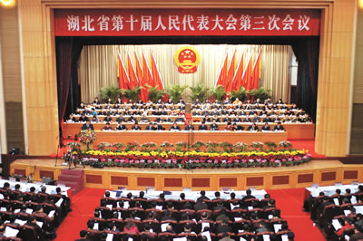 荊楚網(wǎng)消息(湖北日?qǐng)?bào)) 記者余凱報(bào)道:湖北省第十屆人民代表大會(huì)第三次會(huì)議昨日上午在武昌隆重開(kāi)幕。肩負(fù)全省6000萬(wàn)人民重托的600多名代表聚集一堂,共同繪制湖北2005年發(fā)展藍(lán)圖。