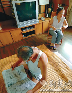 提到節(jié)約水電,他們打開了話匣。二老平時很少用電器,出房間養(yǎng)成了隨手關(guān)燈的習(xí)慣,洗菜洗手的廢水都留著沖廁所。但幾個孩子就不一樣了,自來水嘩嘩地用,樓上樓下有人無人電視都開著。談起這些,老人就心疼。