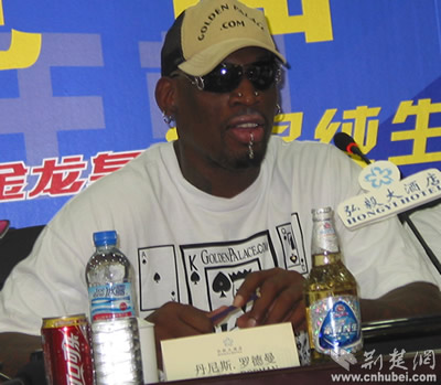 在記者會上,曾和喬丹、皮蓬一起被稱為“公牛鐵三角”、七屆NBA籃板的丹尼斯.羅德曼格外引人注目,記者圍繞著一些球迷感興趣的話題對他進(jìn)行了采訪。當(dāng)有人問起他為什么在見面會上會這么平靜時,他的回答幽默又讓人充滿期待:這里有這么多的攝影機(jī)、照相機(jī)和記者朋友,施展不開,當(dāng)然要平靜。賽場上的我和此時的我完全不同,想看一個真正的羅德曼,明天去賽場吧。