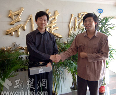 荊楚網(wǎng)總編輯(右)為孟先生(左)頒獎(jiǎng)