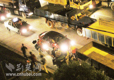4月30日晚8時(shí)許,知情人告訴記者,20多個(gè)扒賊又現(xiàn)身了。晚9時(shí)許,記者趕至武泰閘,只見這一帶的車輛綿延一兩公里,其中多數(shù)為貨車,車速非常緩慢。