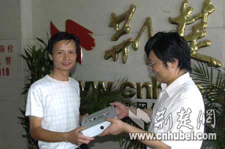 荊楚網副總編輯黃斌給武漢劉先生頒獎