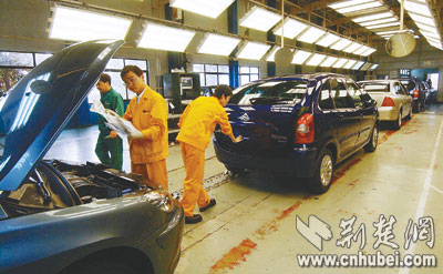繁忙的神龍汽車(chē)生產(chǎn)線。日?qǐng)?bào)記者楊平攝