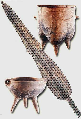 夏家店上層文化陶鼎:炊器(左下,高13.7厘米)[相關(guān)鏈接]:20世紀(jì)中國百項(xiàng)考古大發(fā)現(xiàn)(1-20)21、大溪遺址(圖)22、城頭山遺址(圖)23、屈家?guī)X遺址(圖)24、崧澤遺址(圖)25、馬家窯遺址(圖)26、柳灣墓地(圖)27、牛河梁遺址(圖)28、城子崖遺址(圖)29、良渚文化遺址群(圖)30、石家河遺址群(圖)31、陶寺遺址(圖) 32、王城崗遺址(圖)33、齊家坪遺址(圖)34、卡若遺址(圖)35、石峽遺址(圖) 36、東灣仔北遺址(圖)37、圓山遺址(圖)38、二里頭遺址(圖)39、東下馮遺址(圖)40、夏家店遺址(圖)
