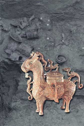 青銅犧尊;酒器(高12.07厘米,寬40.5厘米)[相關(guān)鏈接]:20世紀中國百項考古大發(fā)現(xiàn)(1-20)20世紀中國百項考古大發(fā)現(xiàn)(21-40)41、大甸子遺址和墓地(圖)42、偃師商城(圖)43、鄭州商城遺址(圖)44、盤龍城遺址(圖)45、安陽殷墟遺址(圖)46、吳城遺址(圖)47、新干大墓(圖)48、三星堆祭祀器物坑(圖)49、周原遺址(圖)50、豐鎬遺址與墓地(圖)51、琉璃河遺址(圖)52、晉侯墓地(圖)53、三門峽虢國墓地與上陽城遺址(圖)54、晉國故城遺址(圖) 55、鄭韓故城(圖)56、燕下都遺址(圖)57、曾侯乙墓(圖)58、紀南城周圍的墓葬群(圖)59、中山王陵(圖)60、銅綠山礦冶遺址(圖)