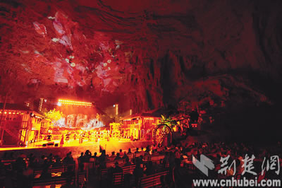 利川騰龍洞成為天然的文藝表演劇場。本報(bào)記者楊平攝