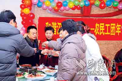 昨日中午,漢陽區(qū)文明辦、建管站和勞動(dòng)局等部門請來40多名農(nóng)民工代表,和區(qū)領(lǐng)導(dǎo)一起吃年飯,這是漢陽區(qū)“文明和諧社區(qū)建設(shè)迎春行動(dòng)”的系列活動(dòng)之一。
