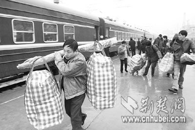 ?10分鐘后,這趟民工專列駛離武昌站,于昨晚20時20分到達襄樊。據武昌站介紹,節(jié)前的民工專列多從南方發(fā)往武漢,節(jié)后武漢鐵路局將加開大量南下、東進的民工專列。