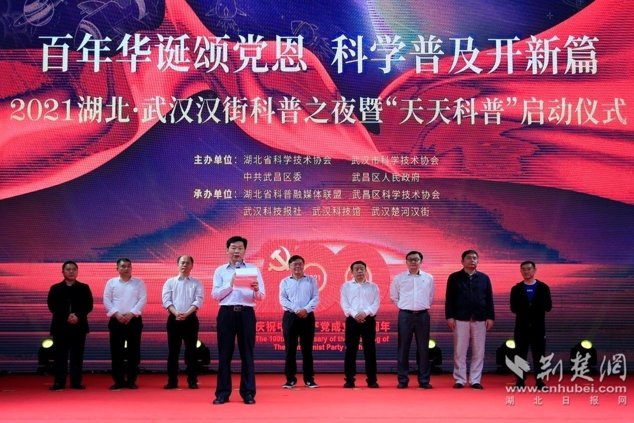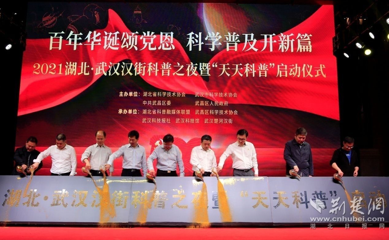 隨后,馬忠星宣布2021湖北?武漢漢街科普之夜暨“天天科普”啟動,并邀請參加活動的嘉賓共同點亮鎏金沙臺。