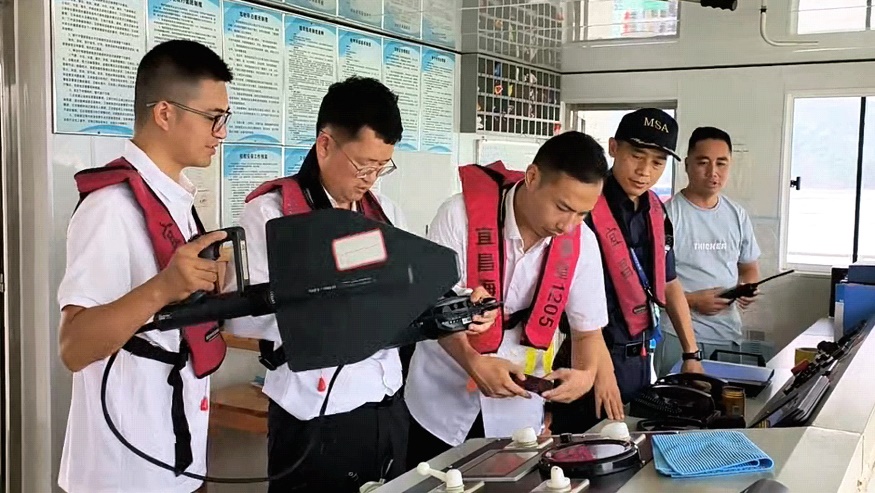 此外,無線電技術人員攜帶專業(yè)便攜移動監(jiān)測設備,對臨江坪待閘錨地區(qū)域開展水上移動電磁環(huán)境監(jiān)測;檢查船舶甚高頻電臺(VHF)等無線電設備,核查設備是否取得型號核準,檢測設備發(fā)射的無線電頻率、帶寬等技術參數(shù),排查通信安全隱患。