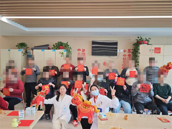 文藝表演環(huán)節(jié),病友代表登臺演唱歌曲,勇敢展現(xiàn)自我風(fēng)采,傳遞出積極向上的精神狀態(tài)。在“拓印福字”民俗體驗中,大家親手制作福字并裝飾儲物柜,在儀式感中感受傳統(tǒng)文化魅力與新春祝福。