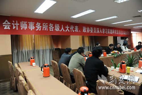 11月14日下午,省注冊會計(jì)師行業(yè)黨委在武昌財(cái)苑大廈召開了全省注冊會計(jì)師行業(yè)各級人大代表、政協(xié)委員深入學(xué)習(xí)實(shí)踐科學(xué)發(fā)展觀活動座談會。來自全省各地的16位各級人大代表、政協(xié)委員齊聚一堂,為深入學(xué)習(xí)實(shí)踐科學(xué)發(fā)展觀活動建言獻(xiàn)策,回顧二十年來注冊會計(jì)師行業(yè)黨建工作的發(fā)展歷程,展望會計(jì)師事務(wù)所行業(yè)的美好未來。