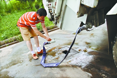 工人師傅說(shuō),改裝后,每輛車(chē)可以排出至少70%的水分。今后轉(zhuǎn)運(yùn)垃圾時(shí),就近找個(gè)下水道,可將垃圾擠干后再運(yùn),不僅解決隨地“大小便”問(wèn)題,還能增加運(yùn)輸量,一舉多得。