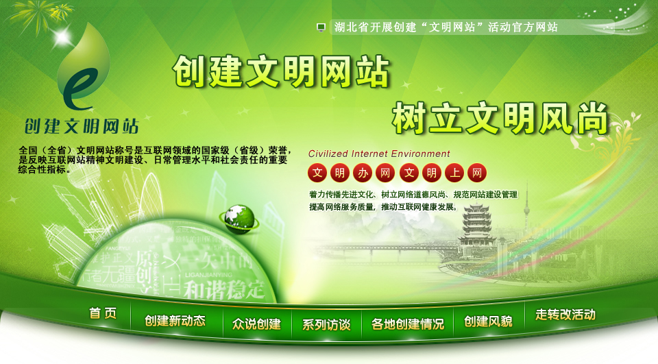 首屆湖北省文明網(wǎng)站評(píng)選擬授予13家網(wǎng)站“首屆湖北省文明網(wǎng)站”稱(chēng)號(hào),授予10個(gè)頻道“首屆湖北省互聯(lián)網(wǎng)文明頻道”稱(chēng)號(hào),授予20家網(wǎng)站“首屆湖北省‘文明網(wǎng)站’創(chuàng)建活動(dòng)先進(jìn)單位”稱(chēng)號(hào)。