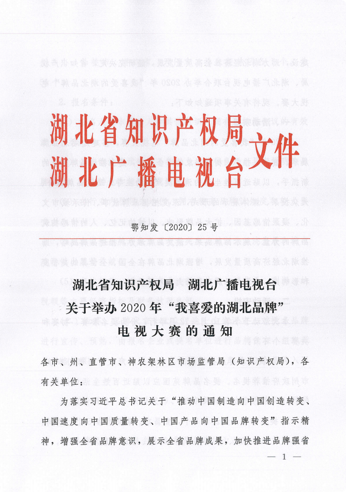 金秋十月,由湖北省知識產(chǎn)權(quán)局、湖北廣播電視臺主辦,湖北省知識產(chǎn)權(quán)發(fā)展中心、湖北廣播電視臺電視綜合事業(yè)部承辦的“2020我喜愛的湖北品牌電視大賽”正式啟動。